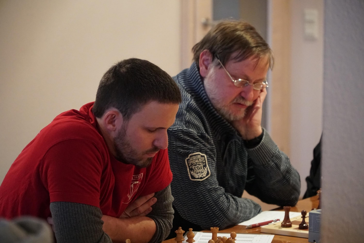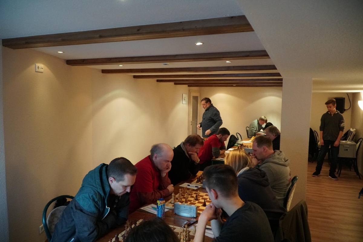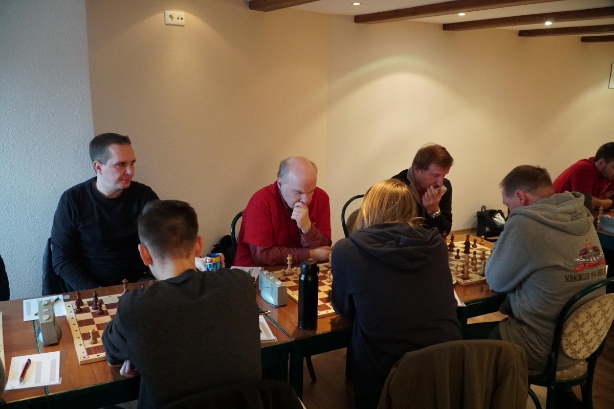 Im letzten Punktspiel des Jahres gelang unserer Ersten beim SC Oberland ein überraschender 5:3 Erfolg. Mit einem schnellen Sieg konnte Andreas das Fehlen von Uwe an Brett acht ausgleichen. Falk gelang in einer wenig aufregenden Partie ein ungefährdetes Remis. Thomas stand nach einem Patzer ausgangs der Eröffnung sehr merkwürdig und musste schauen, dass er seine Stellung irgendwie zusammenhielt. Bernd und Kay hatten sich vorteilhafte Stellungen erarbeitet und Clemens konnte durch seine aktiviere Stellung seinem Gegner ein paar Probleme stellen. Bei Daniel sah die Sache wenig aufregend aus. Folgerichtig gab es dort auch das nächste Remis. Bernd hingegen konnte seine Stellung nicht zum Gewinn führen und ließ seinen Gegner in gewonnener Position ins Remis entwischen. Dafür hatte Thomas etwas mehr Glück und schaffte nach einem Fehler seiner Gegnerin doch noch ein Remis. Besser machten es Kay und Clemens, die ihre vorteilhaften Stellungen souverän zum Sieg führten und so den Mannschaftserfolg sicherstellten.